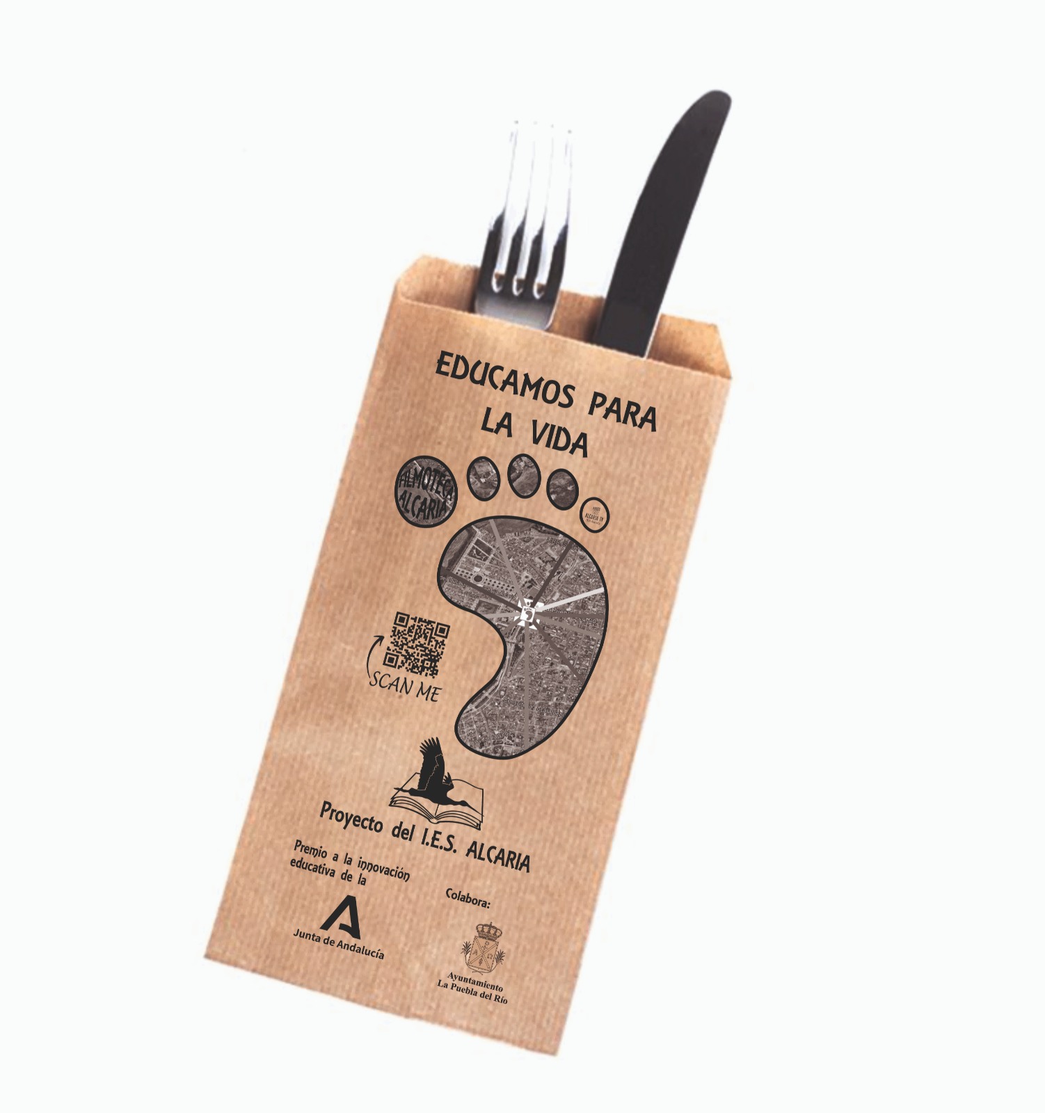 El alumnado, acompañado por profesores y profesoras del centro, fueron por la población mostrando cómo acceder a la Filmoteca. Para ello, se repartieron pegatinas, se mostró la cartelería y en los establecimientos de restauración se repartieron portacubiertos de papel.
